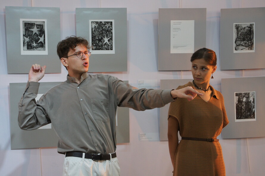 Перед началом спектакля зрители в Мраморном зале «Иностранки» зрители смогут познакомиться с выставочным проектом «Книга художницы», изданием семи книг в жанре livre d’artistе в техниках эстампа. Отправной точкой для создания выставки стали в том числе тексты Даниила Хармса и Николая Олейникова.