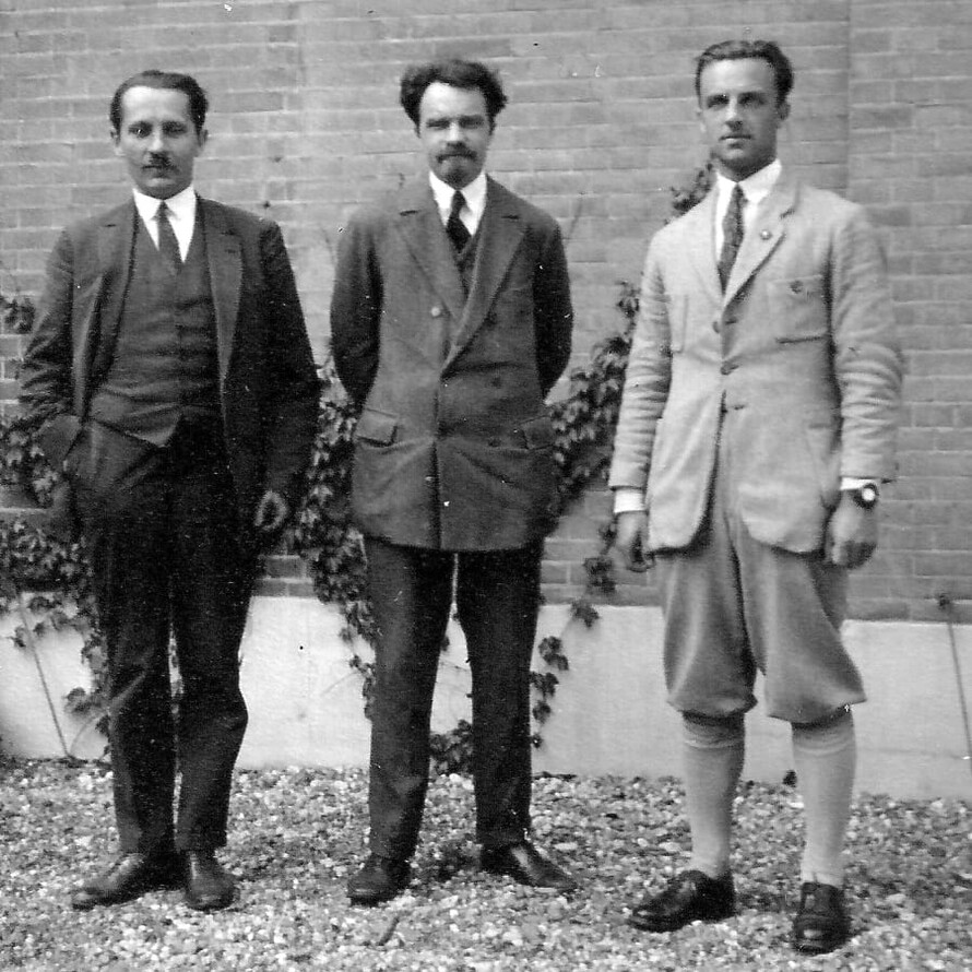 Участники «Православного Дела» во дворе дома на улице Лурмель. Париж, 1939 г. Слева направо: С.Б. Пиленко, Ю. Скобцов, А. Бабаджан, м. Мария, Г.П. Федотов, о. Дмитрий Клепинин, К.В. Мочульский (Фото из архива С.В. Медведевой (Париж), взято из открытых источников)