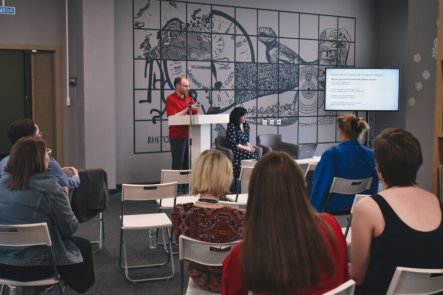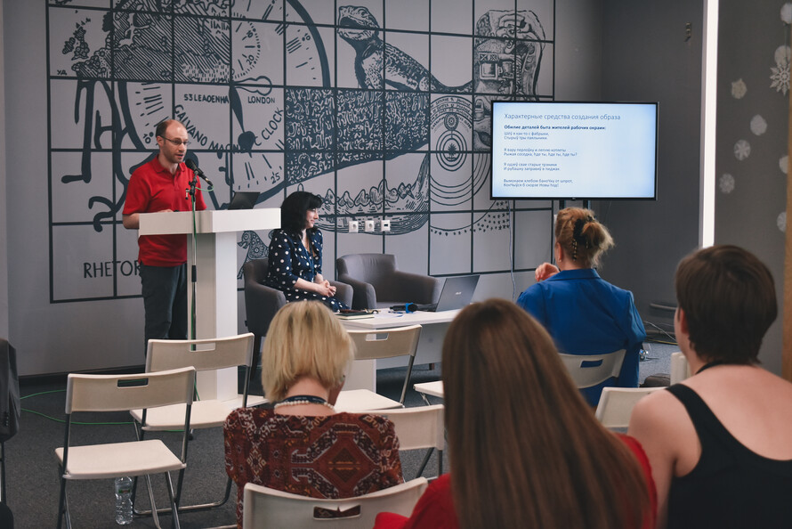 Особое внимание уделялось языковому аспекту. Научный сотрудник Лаборатории социолингвистики РГГУ Антон Сомин познакомил нас с русско-белорусской смешанной речью — трасянкой. Можно сказать, что это похоже на суржик, только по-белорусски. Мы посмотрели популярные мемы на трасянке, узнали о популярных творческих коллективах из Беларуси — «Саша и Сирожа» и «Разбiтае сэрца пацана». Оказывается, что трасянку часто используют как инструмент сатиры и высмеивания, с её помощью шутят и высказываются на остро-социальные и политические темы.
