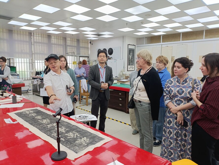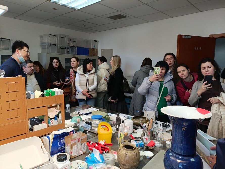 Продуктивным было пребывание российской делегации и во втором городе программы — Пекине. Сначала посетили Центр научно-технической защиты культурных реликвий Национального музея Китая, где осмотрели мастерские по реставрации графики, каллиграфии, живописи, фарфора. И даже попробовали, удобно ли работать инструментом из арсенала китайских коллег!