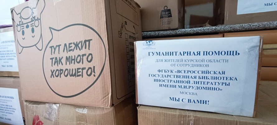 Сотрудники Библиотеки иностранной литературы собрали одежду, лекарства, гигиенические принадлежности, консервы и продукты питания, детские игрушки и спортивный инвентарь, карандаши, фломастеры и альбомы для рисования, а также книги для детей и взрослых в качестве гуманитарной помощи для эвакуированных жителей Курской области.