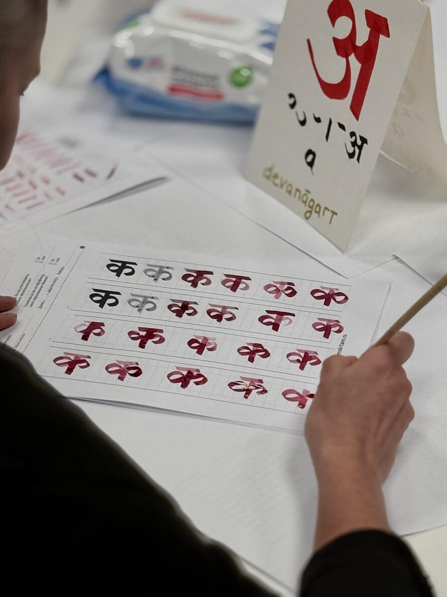 На языковых мастер-классах эксперты раскрыли посетителям секреты изучения санскрита и хинди. Участники получили полезные советы и рекомендации по методикам запоминания лексики и грамматических конструкций, узнали о важности фонетической точности и правильного произношения, научились правильно писать буквы и знаки алфавита, лежащего в основе многих индийских языков. Ксения Серова рассказала об использовании искусственного интеллекта в изучении языков и о секретах внедрения современных нейросетей в учебный процесс. Основатель вольного сетевого сообщества Марцис Гасунс поделился со слушателями способами изучения санскрита. Все желающие познакомились с письменностью на мастер-классе по деванагари от преподавателя санскрита и каллиграфа Ольги Литвиненко. Тематические языковые встречи на английском языке также прошли активно и с пользой: участники с интересом обсуждали индийскую культуру и делились своим опытом. А в рамках нашего постоянного Клуба настольных игр для детей юным гостям провели квиз о культуре Индии.