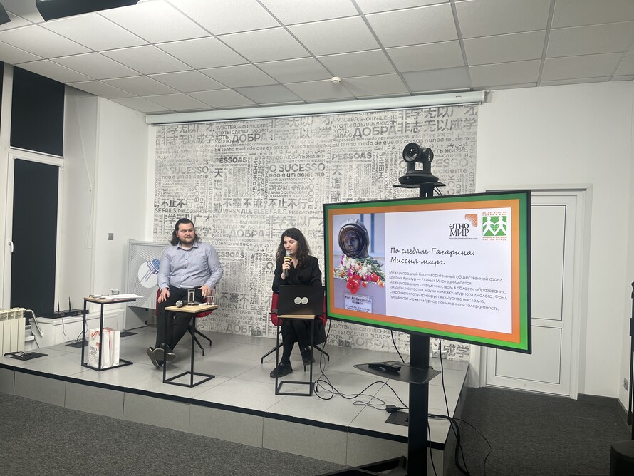 А на иммерсивной лекции «Гагарин. Обнимая мир» вместе с Фондом «Диалог культур — Единый мир» гости посмотрели фильм о великом подвиге первого человека в космосе, узнали, в каких странах и городах благодаря Фонду установлены памятники Юрию Гагарину, Сергею Королёву и Константину Циолковскому. И, конечно, поучаствовали в интересной викторине с призами! Аудитория оказалась очень подготовленной: правильные ответы на вопросы появлялись почти молниеносно. Победители получили в подарок бюст первооткрывателя космоса. Ещё один бюст достался юному участнику викторины, а самые активные гости получили также сертификаты на бесплатное посещение самого большого этнографического парка России «ЭТНОМИР».