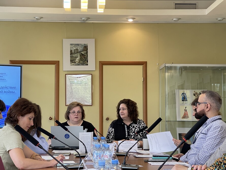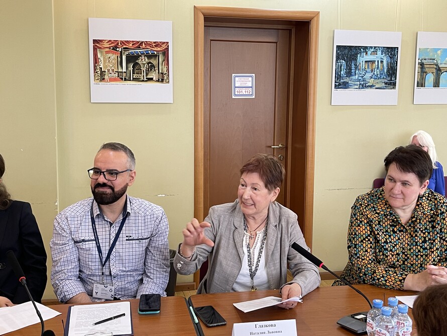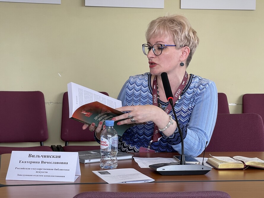 В ходе открытой дискуссии участники Круглого стола обсудили работу с культурным наследием о Великой Отечественной войне. Заведующая отделом комплектования Российской государственной библиотеки искусств Екатерина Вильчинская представила новые издания РГБИ: библиографический указатель «Драматургия эпохи Великой Отечественной войны» и фотоальбом «Сороковые, роковые… Спектакли о войне: фотографии из фондов Российской государственной библиотеки искусств».