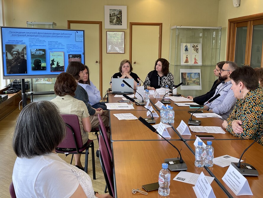 Сотрудники Центра комплектования Анастасия Гуменюк, Алла Мавлитова, Ангелина Масленникова, Наталия Глазкова, Ольга Косенко, Анна Холомеева, Аммар Саад Алдин представили наиболее интересные произведения писателей-фронтовиков в переводах на европейские и восточные языки, исторические источники о Тегеранской конференции 1943 года, которые можно найти только в фондах «Иностранки», рассказали о роли Библиотеки иностранной литературы в годы Великой Отечественной войны как центра антифашистской контрпропаганды. Эксперты поделились также практическим опытом комплектования зарубежной книгой в условиях повсеместно распространяемых на международном книжном рынке изданий, в которых умышленно искажаются установленные историческими источниками факты.