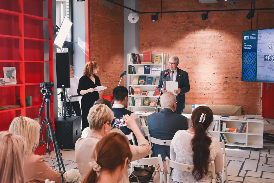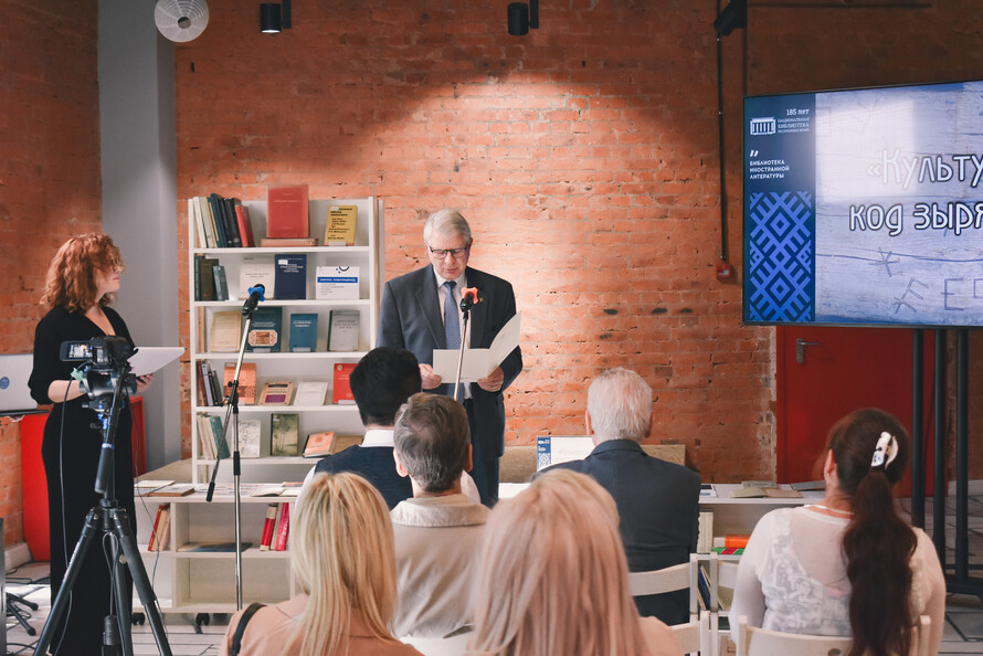 В рамках встречи также выступил директор культурно-делового центра Республики Коми в Москве Сергей Беляев. Он поблагодарил «Иностранку» за предоставленную возможность провести такое мероприятие. Сергей Михайлович рассказал, что в этом году отмечается 650 лет с момента создания коми языка и о том, что коми алфавит создали последним в Европе, в чём заключается его особая ценность. Помимо этого Сергей Беляев зачитал приветствие исполняющего обязанности министра культуры, туризма и архивного дела Республики Коми Марии Балмастовой.