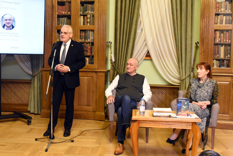 Поздравить писателя в Библиотеку приехал Чрезвычайный и Полномочный Посол Республики Северная Македония в РФ господин Ненад Колев. Слово ему передал генеральный директор Библиотеки Павел Кузьмин.