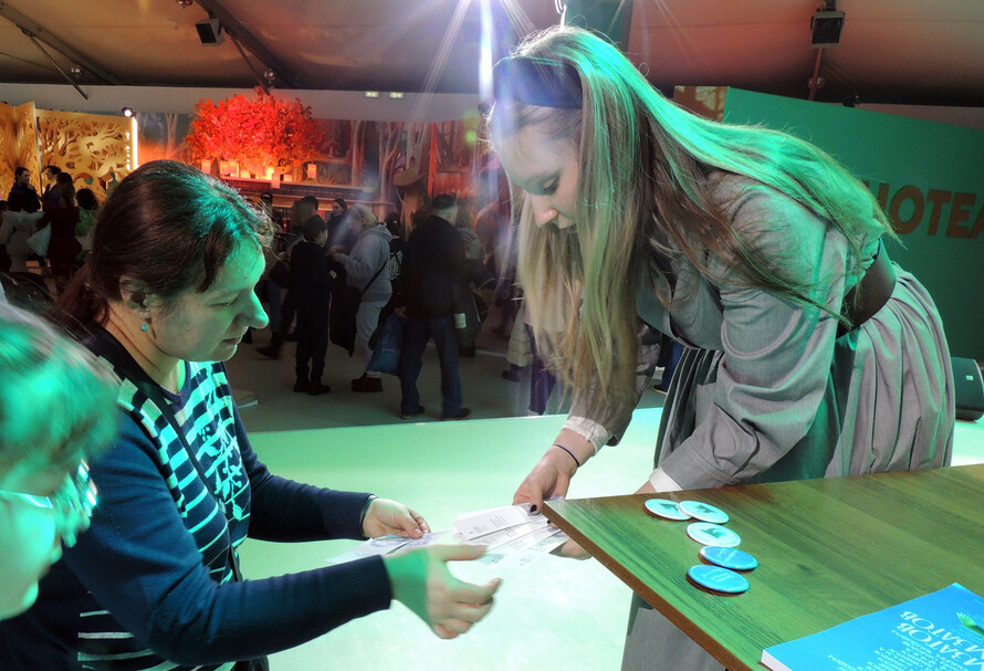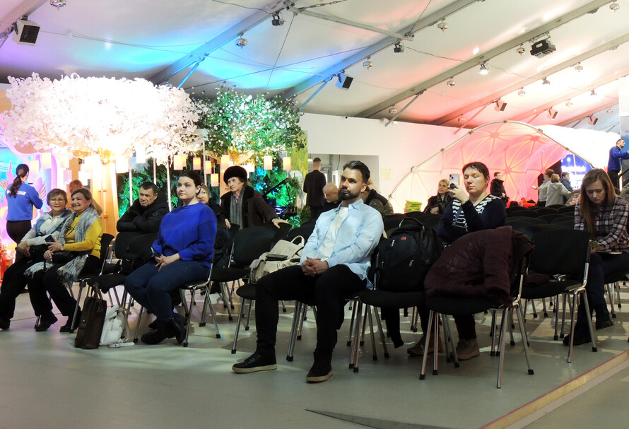 На встрече гости выставки узнали о тонкостях перевода поэзии Расула Гамзатова на иностранные языки и услышали, как звучат стихотворения на сербском, китайском, арабском и испанском языках. Живой отклик вызвали публичные чтения произведений поэта из сборника «Высокие звезды» — со сцены прозвучали стихи на русском и аварском языках.
