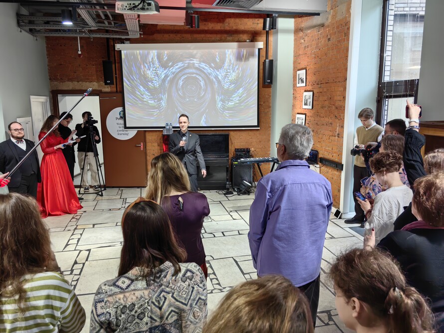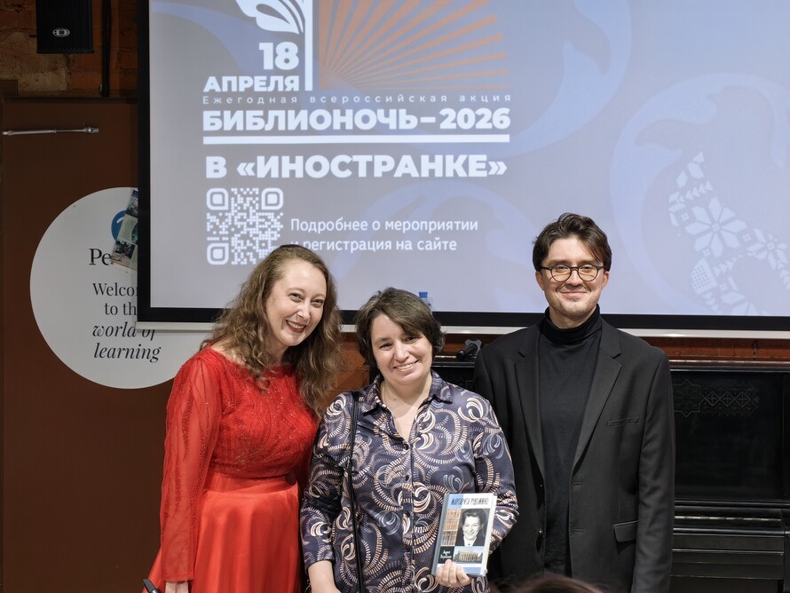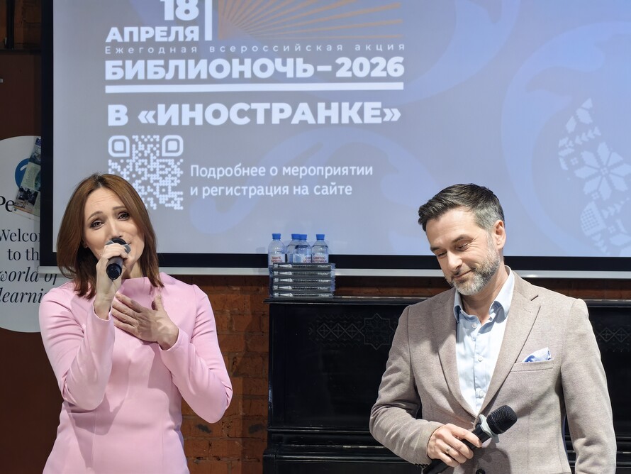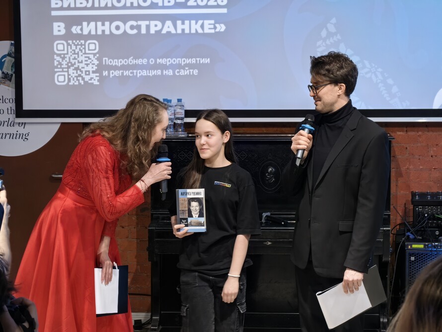 Ведущие открытия, актёры Московского театра Всеволода Шиловского Виктория Пархоменко и Никита Шилкин, стали первыми проводниками в богатство культур России. Они провели викторину для гостей «Библионочи-2026»: за правильные ответы на вопросы о языках народов России и мира гости получали книги Андрея Низовского из знаменитой серии «Жизнь замечательных людей» о Маргарите Ивановне Рудомино, а также билеты в театр Всеволода Шиловского.