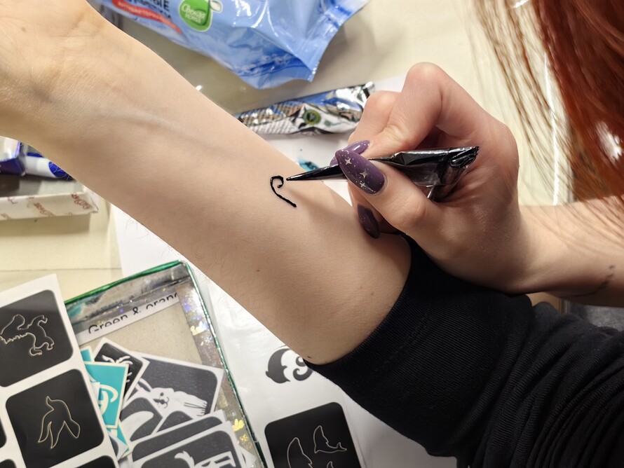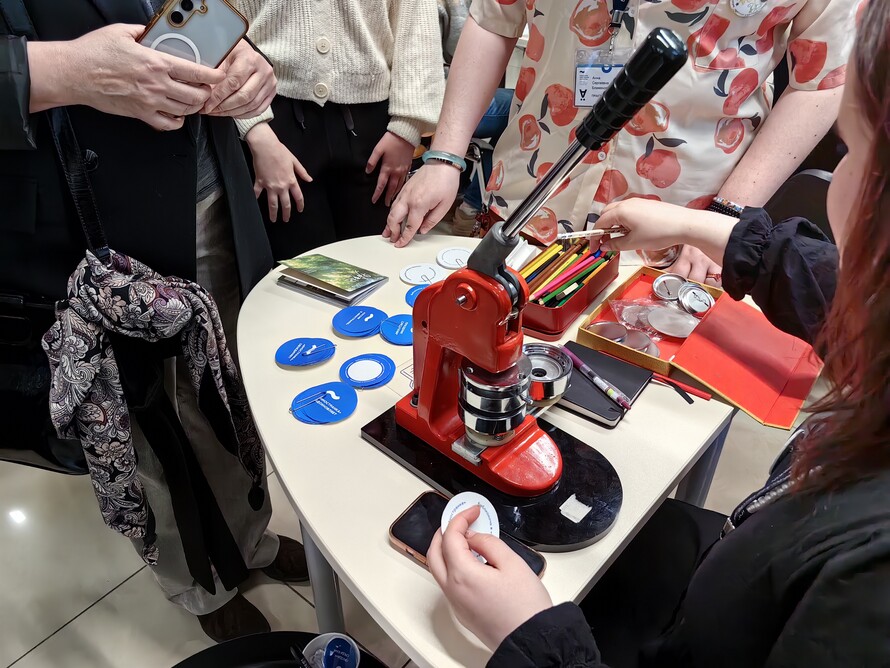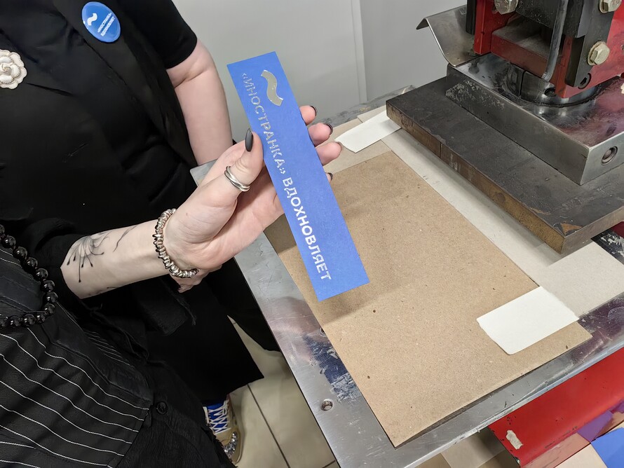 На третьем этаже в Холле до самой темноты гости «творили»: делали книжные закладки на реставрационном прессе с памятной надписью «Иностранка вдохновляет!», плели фенечки с орнаментами саамов, чукчей, татар, марийцев и удмуртов, создавали славянские куклы‑обереги и значки «Иностранки», на которые можно было нанести и свой принт. Самые смелые рисовали хной национальные узоры и даже воплощали собственные художественные идеи. А ещё знакомились с книгами о культуре и традициях народов России из фонда Библиотеки на «книжной дегустации»: сотрудники «Иностранки» рассказывали о каждом издании всем желающим, погружая читателей в увлекательный мир литературы.