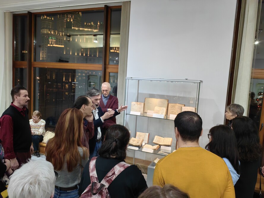 Гости приняли участие в библиотечном «туризме»: на экскурсии по книгохранению «Россия глазами мира» открыли для себя редкие иностранные журналы и фотоальбомы о русской культуре. А в Мраморном зале можно было познакомиться с выставкой «Дар речи: языки коренных народов» на кураторской экскурсии руководителя Центра междисциплинарных исследований Владимира Фролова и узнать о почти 80 редких и исчезающих языках Дагестана, Севера, Сибири и Дальнего Востока.