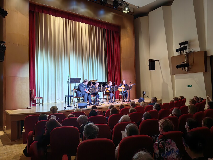 С 19:00 «Иностранка» наполнилась музыкой! Сочинения Петра Ильича Чайковского и Сергея Васильевича Рахманинова приобрели новое звучание в исполнении ВИА «Империя»: музыканты играли на домре, балалайке и рояле! В 21:00 на сцену вышла фолк-рок группа «Корни Озёр», чья музыка сплетает роковые ритмы с древними инструментами (калюка, тальхарпа, колёсная лира и другими) и переносит слушателей в пространства мифов, сказок и легенд. Коллектив покорил зрителей живым звуком и настоящей творческой энергией, самобытностью и оригинальностью, импровизациями и увлекательным интерактивом. Усидеть на месте было невозможно, поэтому гости танцевали в проходах, подпевали и даже водили хороводы. А на медленных композициях зал зажигался фонариками телефонов: атмосфера романтики и полного погружения в музыку!