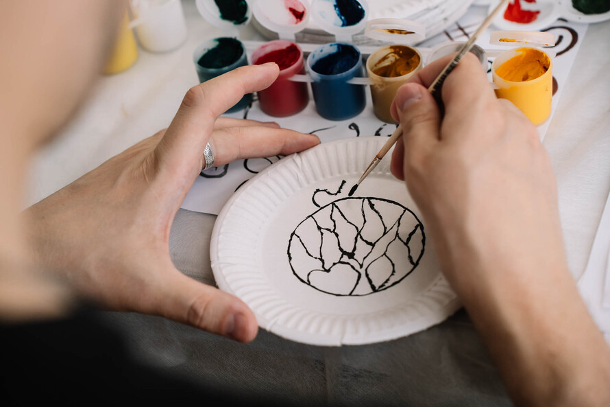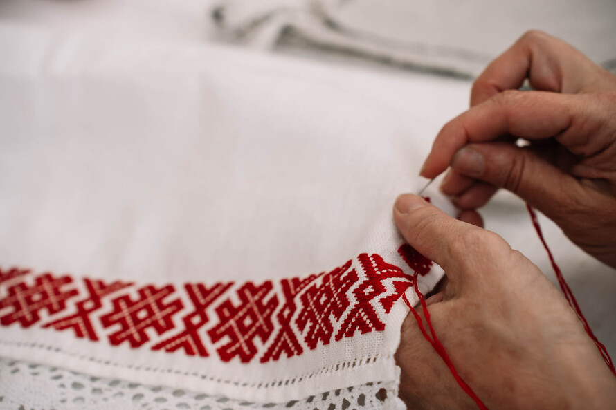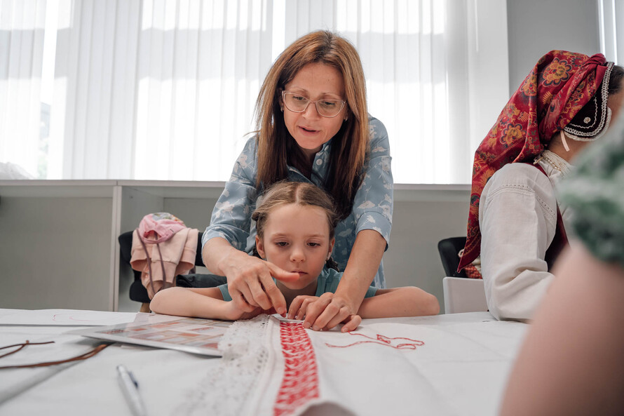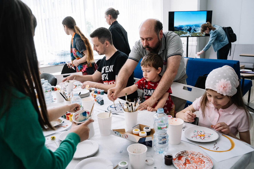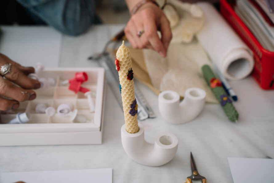 научились вязать морские узлы, расписывали тарелочки, все вместе вышивали традиционный рушник и делали восковую свечу.