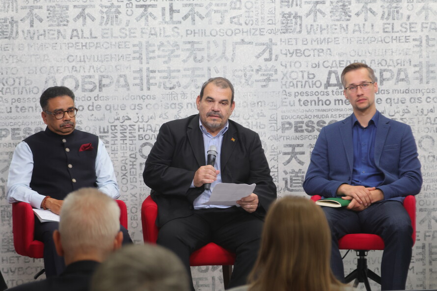 «БРИКС — это объединение на общих интересах, самый главный из которых, чтобы люди жили в мире, добре и благополучии», — сказал в своем выступлении председатель Ассоциации юристов России, председатель Императорского Православного Палестинского Общества, президент Российского книжного союза, Сергей Степашин. Он отметил, что соприкасаясь с культурным, историческим наследием многих стран мира, человек начинает ощущать, что его дом — это не одна конкретная страна, а планета Земля.