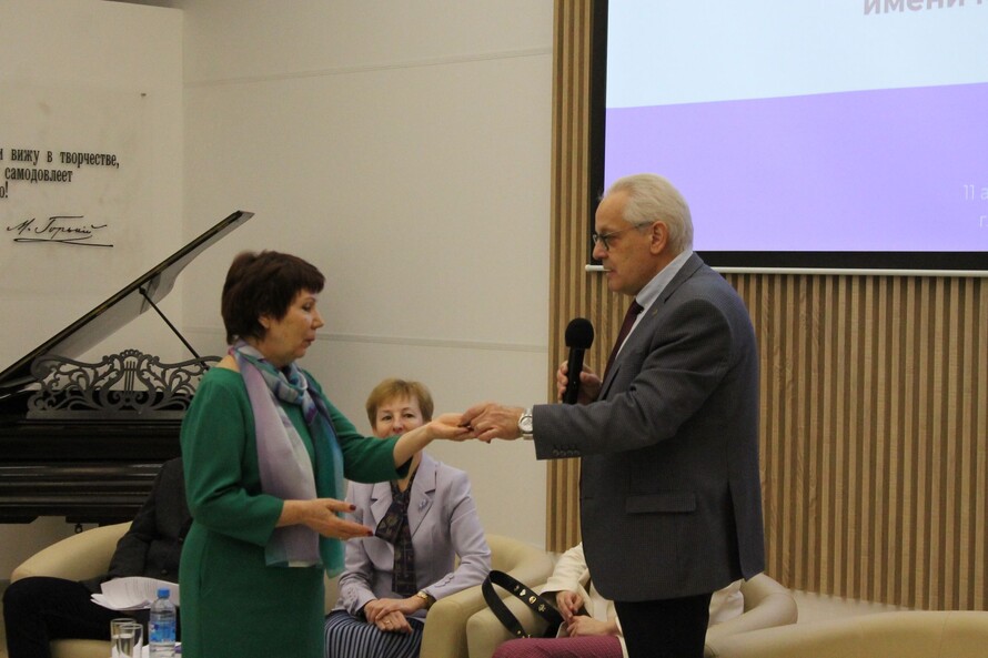 11 апреля конференц-зал Владимирской областной научной библиотеки был заполнен многочисленной аудиторией, включавшей руководителей и сотрудников библиотек, преподавателей и учащихся вузов. Открыли День «Иностранки» приветствия министра культуры Владимирской области Ольги Деминой, генерального директора Библиотеки иностранной литературы Павла Кузьмина и директора областной научной библиотеки Татьяны Брагиной. Павел Леонидович вручил Татьяне Васильевне высшую профессиональную награду «Иностранки» — «За служение и преданность библиотеке».