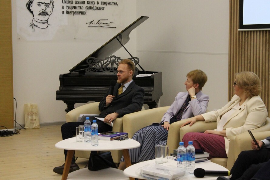 Заместитель директора Центра непрерывного образования и повышения квалификации (Академия «Рудомино») Сергей Пономарев представил ключевые направления образовательной деятельности и масштабные мероприятия, которые проводят подразделения Академии «Рудомино» — Лингвистический ресурсный центр и Центр библиотековедения и профессионального взаимодействия. Выступающий уделил внимание программам дополнительного профессионального образования, повышения квалификации, практических семинаров для специалистов сферы культуры, главным образом в области библиотечного дела. Для студенческой аудитории существует возможность прохождения практики в подразделениях библиотеки.