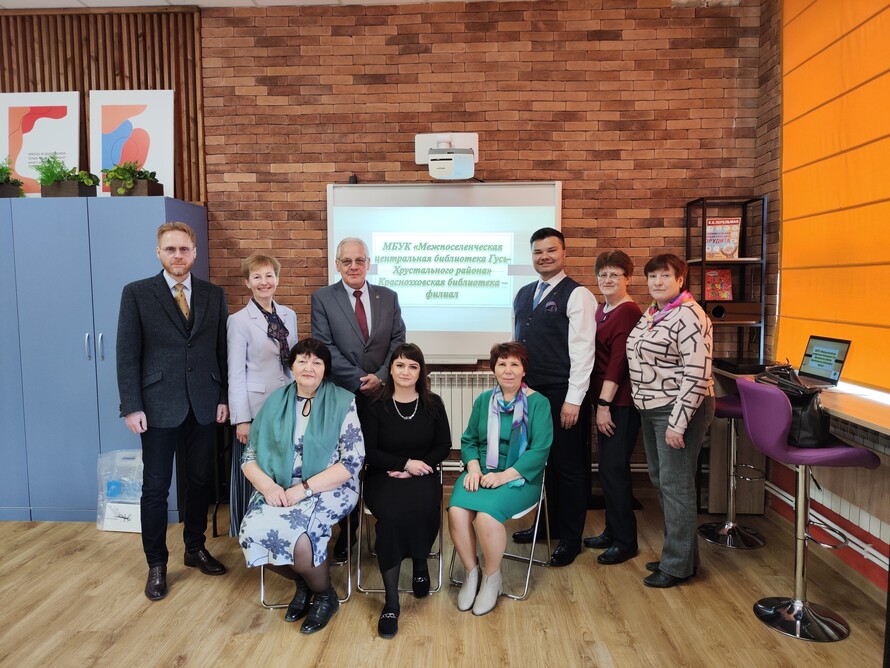 Следуя заложенной Екатериной Гениевой традиции, делегация Библиотеки иностранной литературы посетила библиотечное учреждение в сельской местности — Красноэховскую библиотеку-филиал Межпоселенческой центральной библиотека Гусь-Хрустального района. Заведующая отделом обслуживания библиотеки Елена Матюхина провела экскурсию, представила фотопрезентацию о деятельности библиотеки.