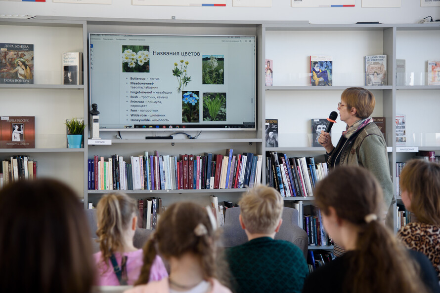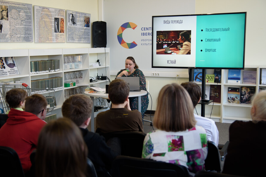На мастер-классе «Кто такой переводчик?» ведущий библиотекарь Центра детской книги и детских программ Анна Болдырева постаралась в полном объёме представить профессию, её миссию и задачи, а у слушателей была возможность сразу попробовать свои силы на практике — в частности, поработать со словарями и разобрать небольшой фрагмент художественного текста.