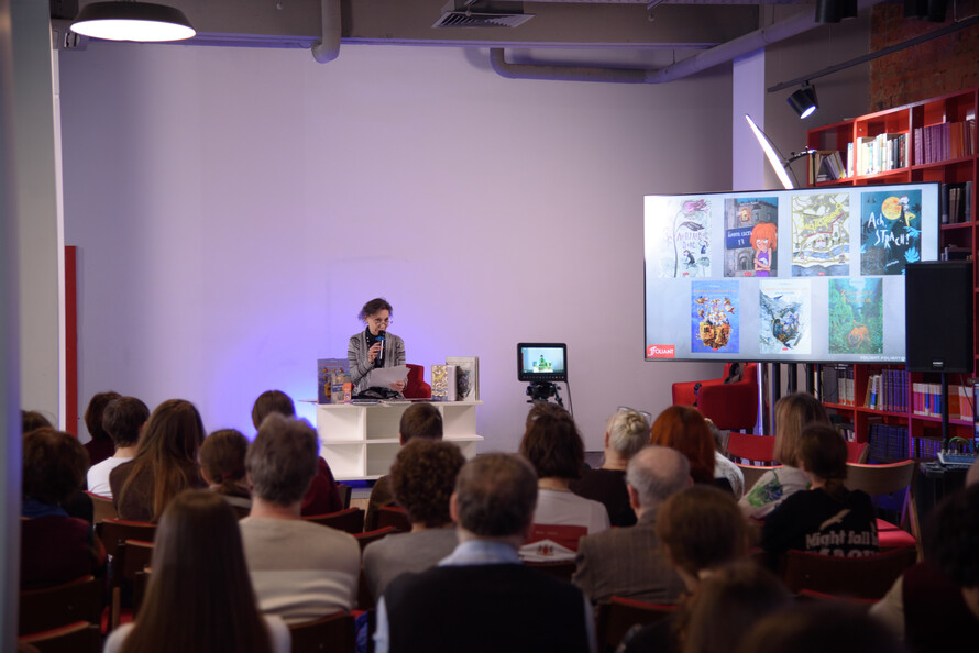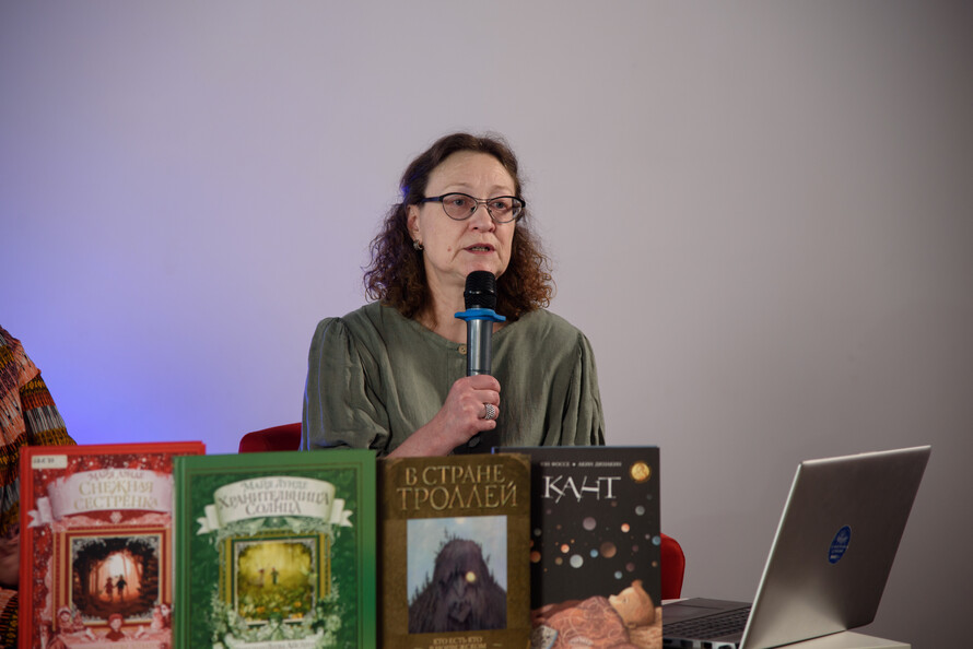 Интересными были встречи с переводчиками-скандинавистами. Елена Дорофеева, редактор серии «НордБук» издательства «Городец», вместе с переводчицей с норвежского языка Еленой Рачинской рассказали о том, какие детские норвежские книги вышли в последние годы на русском языке. Елена Рачинская подробно рассказала о работе над серией о полярных исследователях и о том, в какие темы приходится погружаться специалисту, чтобы сделать точный перевод: устройство кораблей, географические названия, специальное снаряжение. Отдельно эксперты представили новинку: детскую книгу нобелевского лауреата Юна Фоссе «Кант».