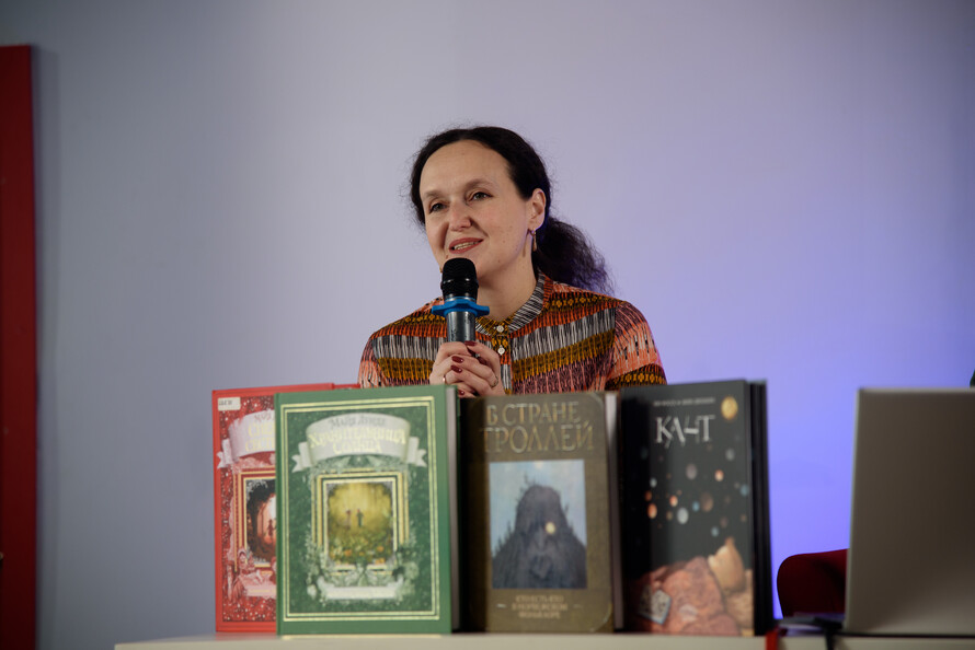 Также Елена Дорофеева рассказала о детской литературе Гренландии и переводах на русский язык книги Ланы Хансен «Тулугак — мальчик-ворон» и сборника народных сказок «Одноглазый великан. Сказки и легенды Гренландии» издательства «Городец».