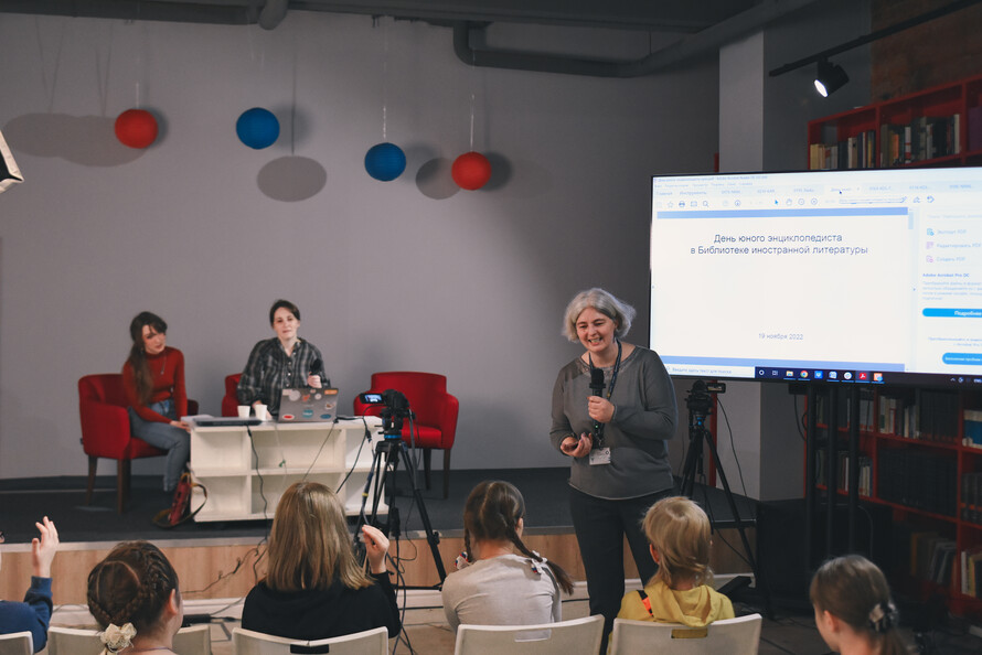 Фестиваль «День юного энциклопедиста» приурочен ко дню рождения главного русского энциклопедиста — Михаила Васильевича Ломоносова. На мастер-классе с художницей Нюсей Красовицкой и редактором Надеждой Крученицкой из издательства «Розовый жираф» гости библиотеки обсудили, кого можно считать ходячей энциклопедией и сколько он должен знать (как можно больше из самых разных областей).