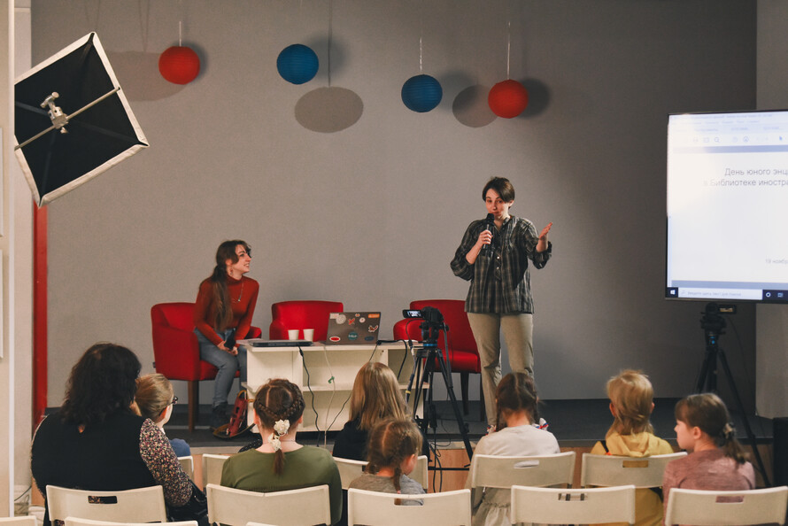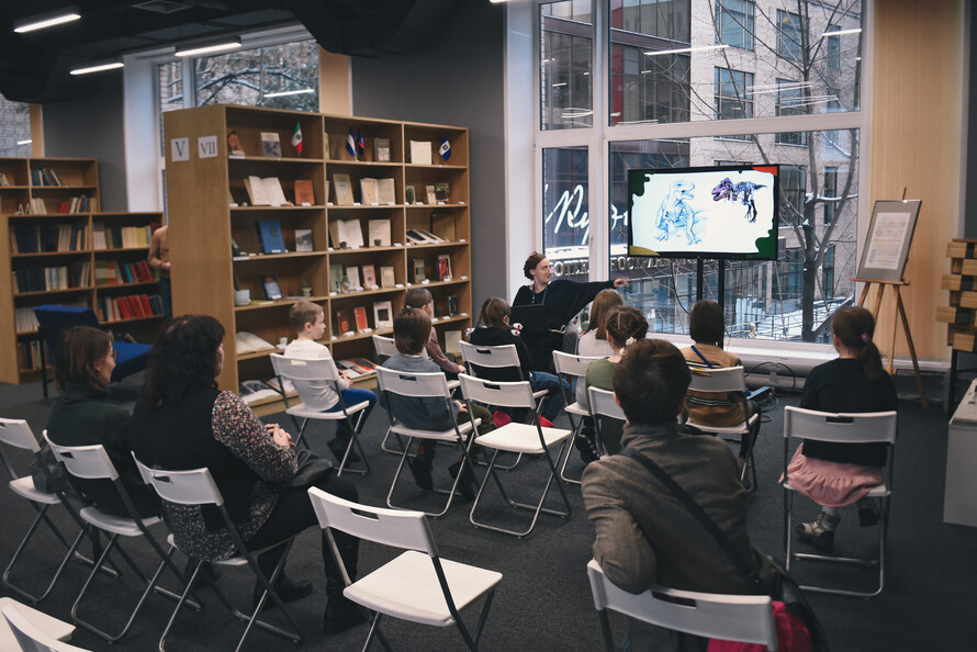 19 ноября в «Иностранке» прошёл фестиваль о науке и научно-популярной литературе для детей и подростков. Юные посетители погрузились в мир палеонтологов, космонавтов, научных редакторов, китайских каллиграфов — и всё это не выходя из библиотеки.