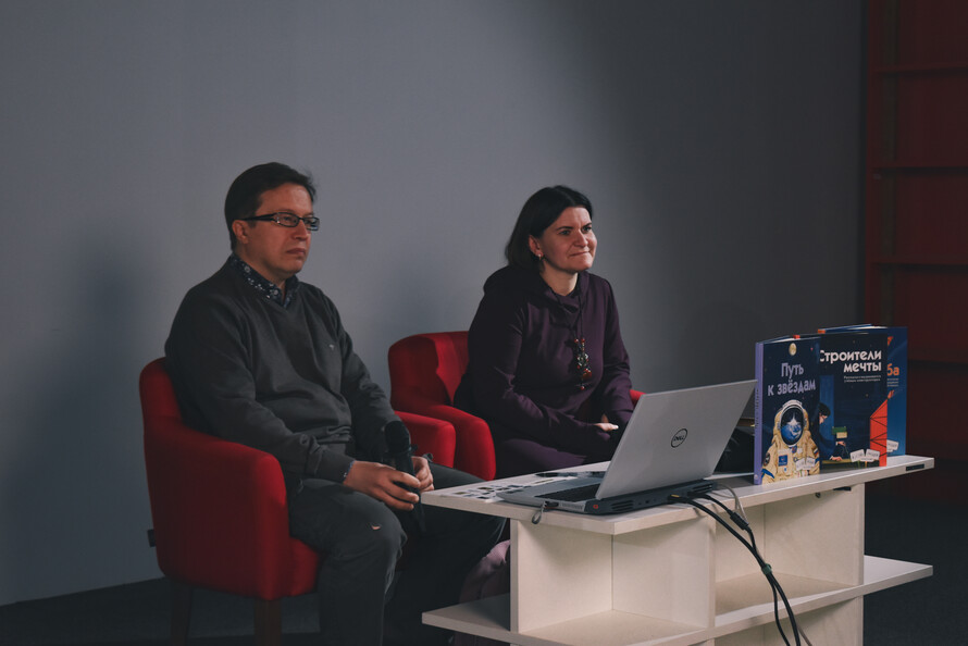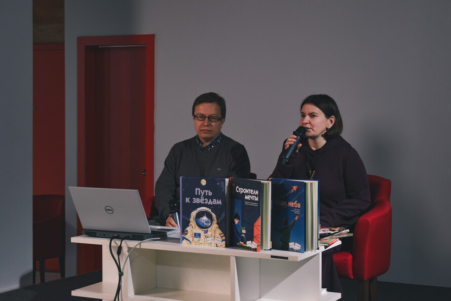 Куда же без космоса? На фестивале зашёл разговор и об известных космонавтах, и о конструкторах ракет, и о лётчиках, и даже о метро — пусть оно и не совсем относится к космосу. Писатели, историки и краеведы Наталья и Василий Волковы провели для гостей «Иностранки» викторину: участники вытягивали из мешочка предметы и должны были угадать, какое отношение они имеют к космосу. Гости фестиваля выяснили, как живут космонавты на космических станциях, что проращивают в космосе и какое отношение к космосу имеет теннисная ракетка.