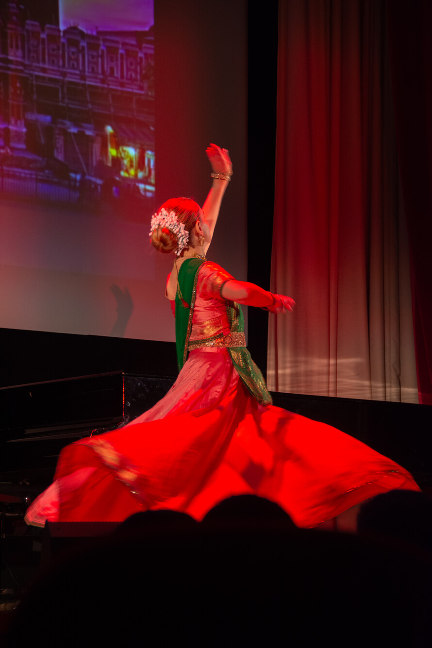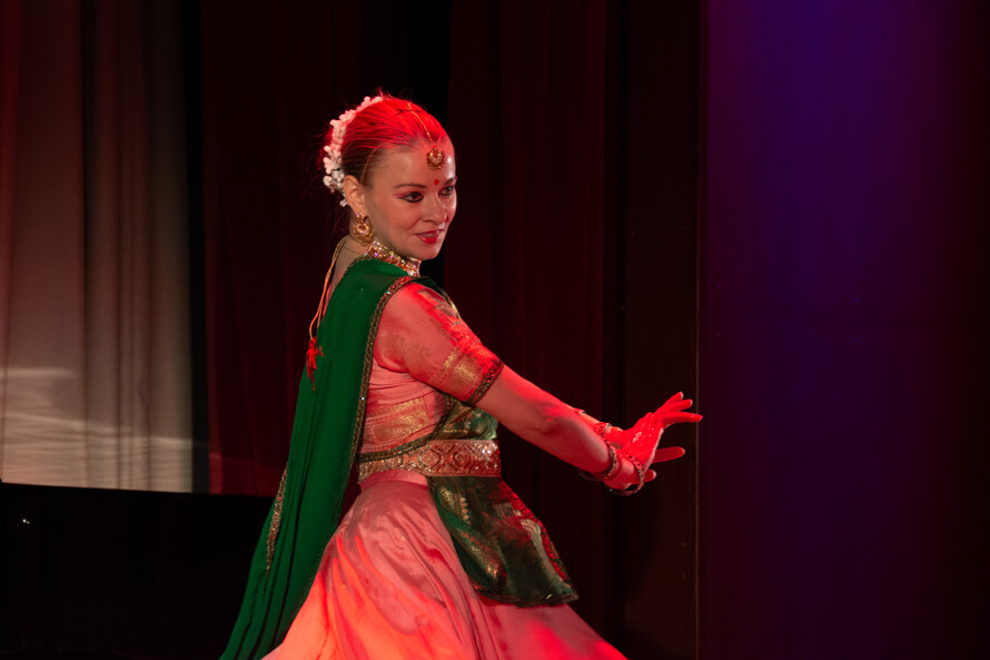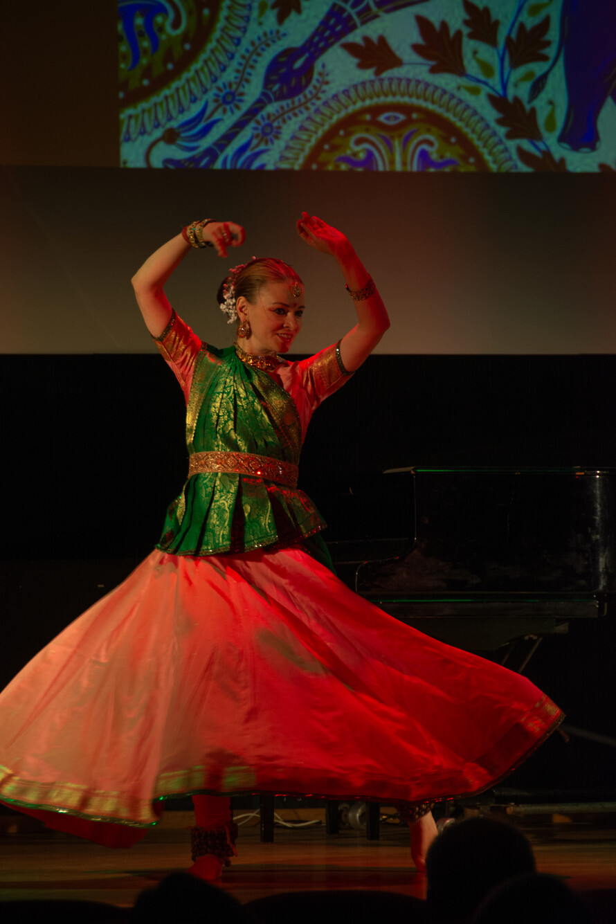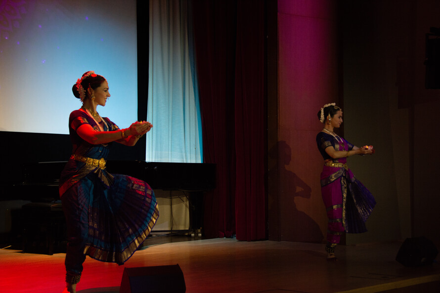 Танец в Индии является великолепным способом передать зрителю не только красоту движений, но и картины индийских легенд и мифов, образы богов и глубину человеческих чувств. Галина Кондратьева познакомила зрителей с различными направлениями классического индийского танца. Она исполнила несколько номеров в разных стилях, направлениях и с использованием разных хореографических элементов и музыкальных форм. А Манси Парашар показала зрителям композицию «Рудраштакам», воспевающую величие божества Шивы. Студия танца «Сарасвати» представила танец «Пушпанджали» в классическом стиле Южной Индии Бхаратанатьям. Это зарисовка о богине Дурге, сразившей демона Махишу.