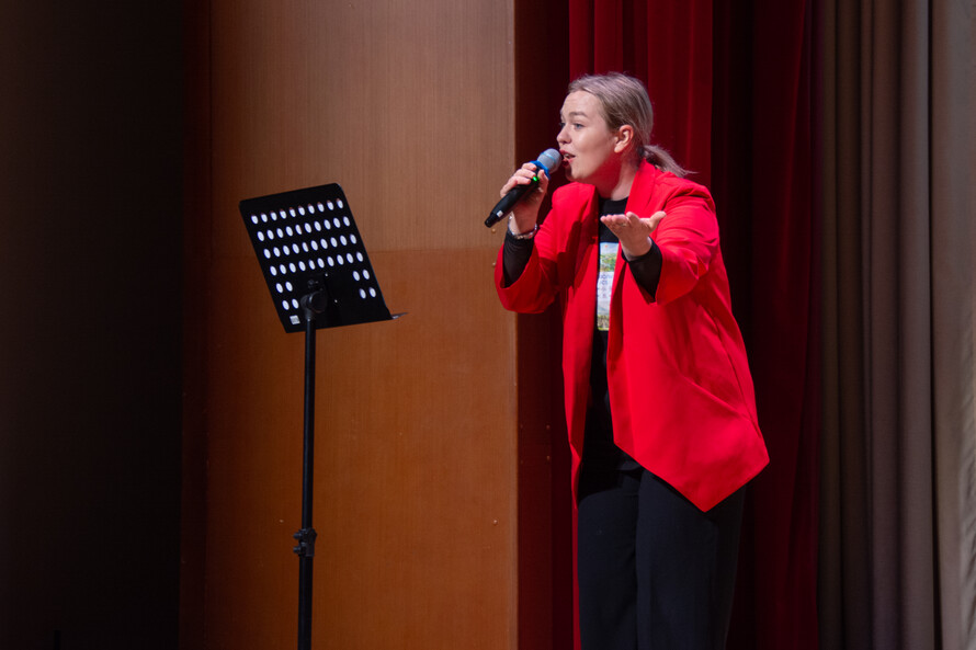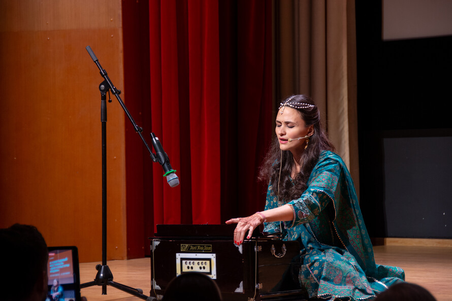 Музыкально-поэтическая часть концерта открылась выступлением оперной певицы, лауреата международных конкурсов и премии Президента РФ Оксаны Горностаевой. Она исполнила «Алфавит санскрита» — номер с использованием музыкального инструмента фисгармония в вокальном сопровождении.