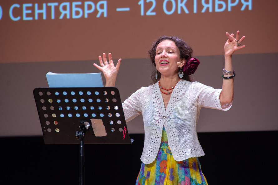 Затем на праздничном концерте гостей приветствовала генеральный директор Библиотеки иностранной литературы Марина Захаренко.